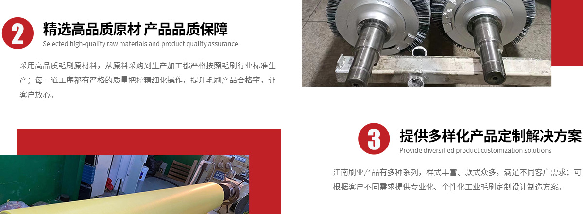 潛山江南刷業(yè)有限公司生產(chǎn)汽車噴涂鴕鳥毛毛刷,鋁板脫脂線輥刷,鋁板去氧化皮輥刷,淬火爐爐內(nèi)輥,無(wú)紡布擠油輥擠干輥,無(wú)紡布真空吸油輥,電加熱打孔針輥等,以及各類涂油滾&膠輥&海綿滾&不織布輥、密封刷&鋼刷式密封、輸送帶刷式清掃器&牛體刷、鋼絲刷條&鋼絲板刷、PVC毛刷板&尼龍毛刷條、打孔鋁針輥&打孔銅針輥、圓形滾刷毛刷輥系列、圓形鋼刷&鋼絲刷輥、拋光毛刺磨料刷、試管刷&管道刷等各類刷制品。江南刷業(yè)注重...